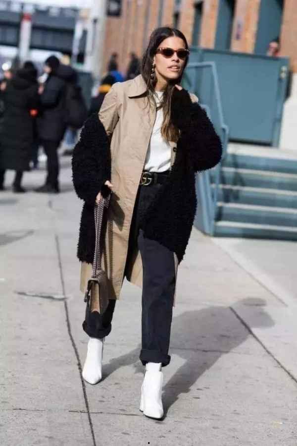 接下来,我们来看看牛仔裤和短靴的款式搭配。